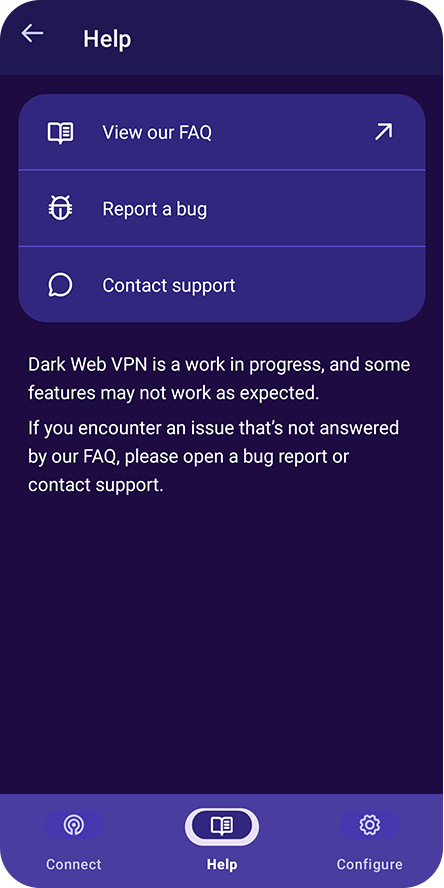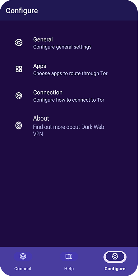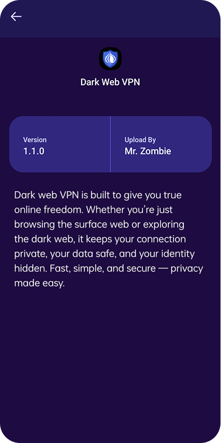 • Seamless Integration - Dark Web VPN embeds a customized Tor binary within the app, so you don’t need to install anything extra.